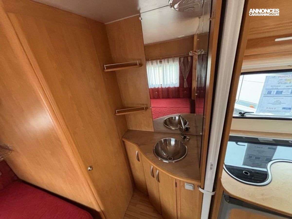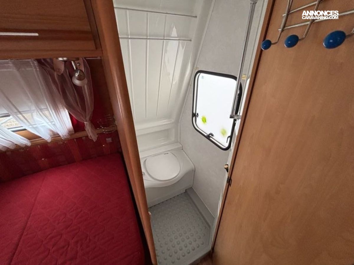 Bac de douche, Cuisine en long, Lit à la Française, Lit dînette, Salon en U arrière, WC cassette.