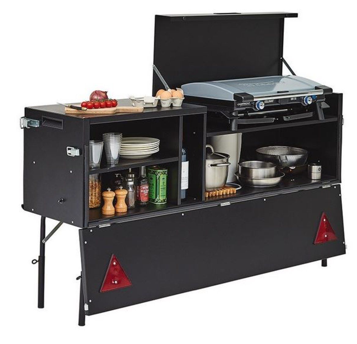 LES PLUS : Bloc cuisine extérieur avec évier, 3 feux ou 2 feux grill, étagères intérieures