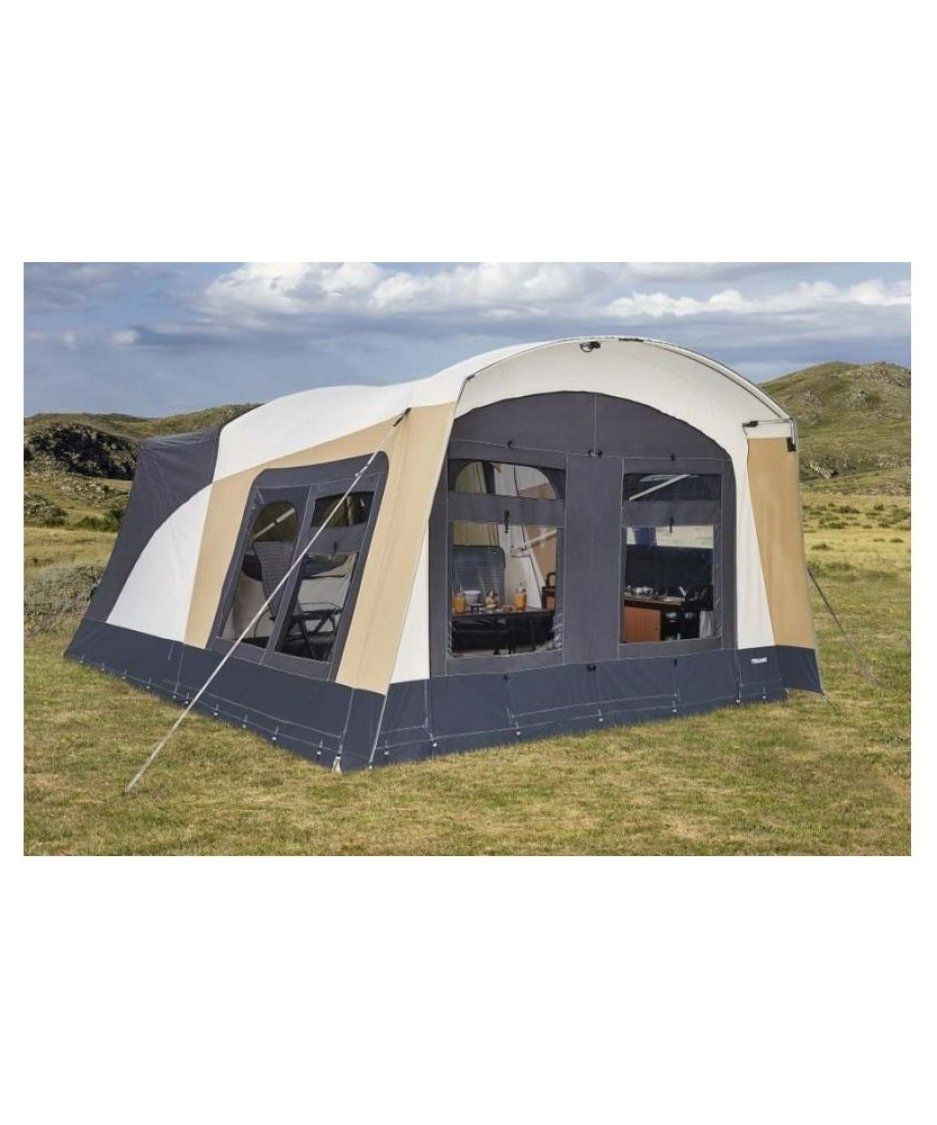 Montage simple et rapide : l'auvent est solidaire de la partie arrière et se déploie en même temps que les chambres - Aérations moustiquaire occultables - Compacte, légère et peu encombrante - Sytème Easy Pac - Chambres sombres