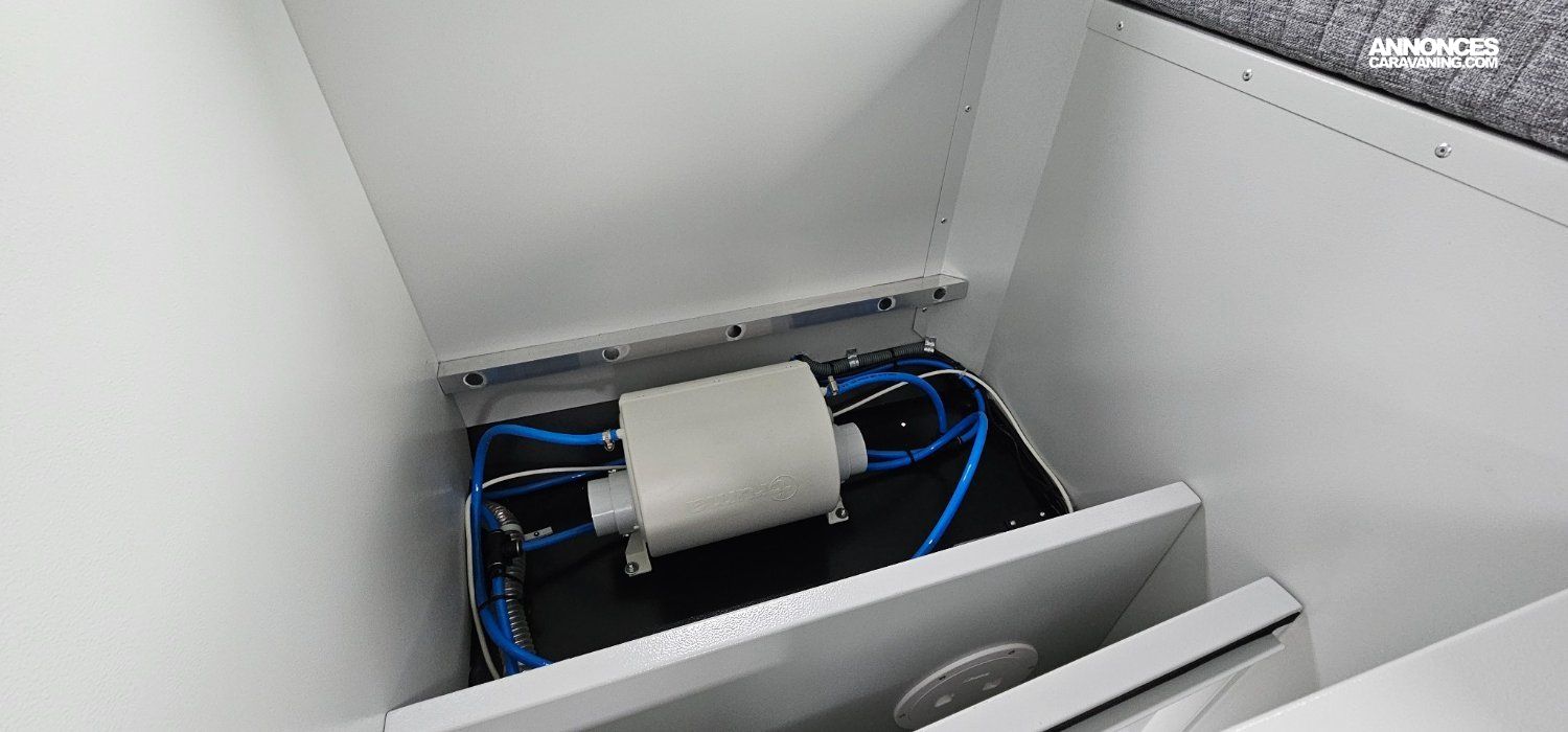 • Douche intérieure + option eau chaude : confort rare en cellule compacte
