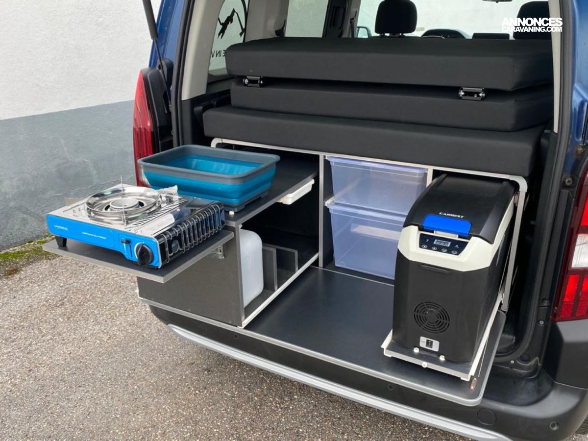 Attention, bien vérifier que les dimensions permettent d'installer la CampingBox. Sur les Berlingo, Partner, Kangoo et Citan la banquette doit rester couchée pour l'installation.