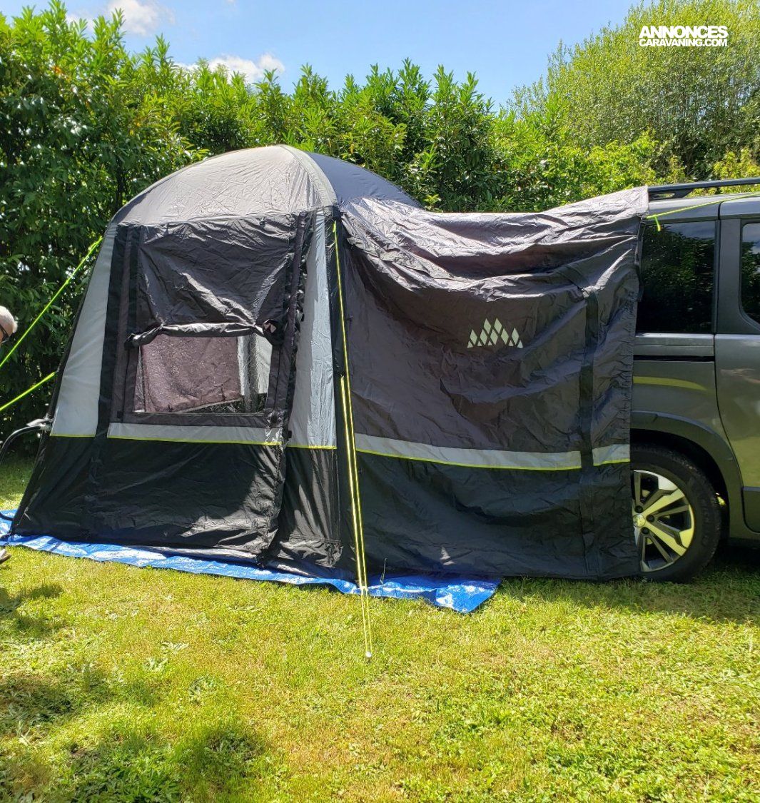Prolongation de 1,50m pour raccord à la voiture, possibilité de fermer le sas pour la nuit, possibilité de fermer le haillon de voiture avec le sas en place.