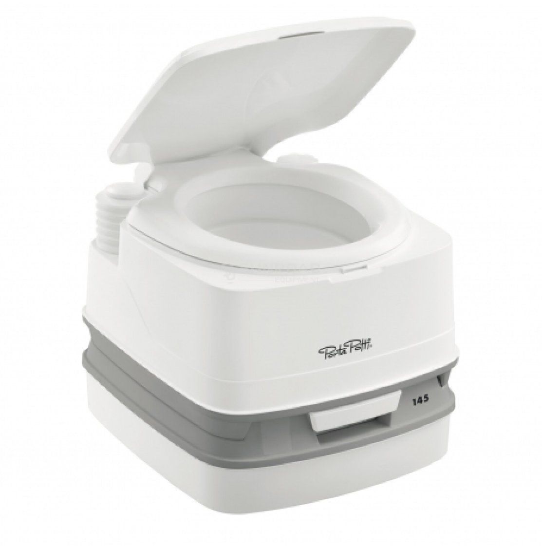 Chasse d'eau manuelle avec pompe à soufflet. Capacité du réservoir à matières : 12 litres. Capacité du réservoir d'eau propre : 15 litres. Dim. (LxHxP) : 383 x 330 x 427 mm. Poids: 3,6 kg. Coloris: blanc.