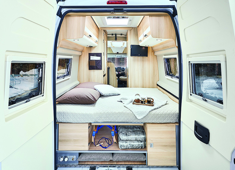 Parmi les nombreux atouts de cette nouveauté, citons, par exemple, la présence de la penderie Modul’Space, la seconde batterie de cellule de série, le réservoir des eaux usées isolé ou encore le réfrigérateur 90l à compression. De quoi voyager aussi sereinement que possible.